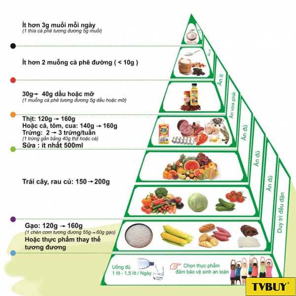 Tháp cân đối dinh dưỡng phù hợp cho chế độ ăn uống tăng chiều cao ở tuổi 13