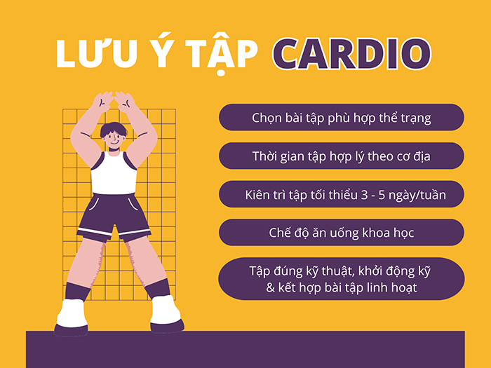 - Luôn khởi động trước khi tập Cardio để hạn chế chấn thương, chuột rút trong lúc tập.
