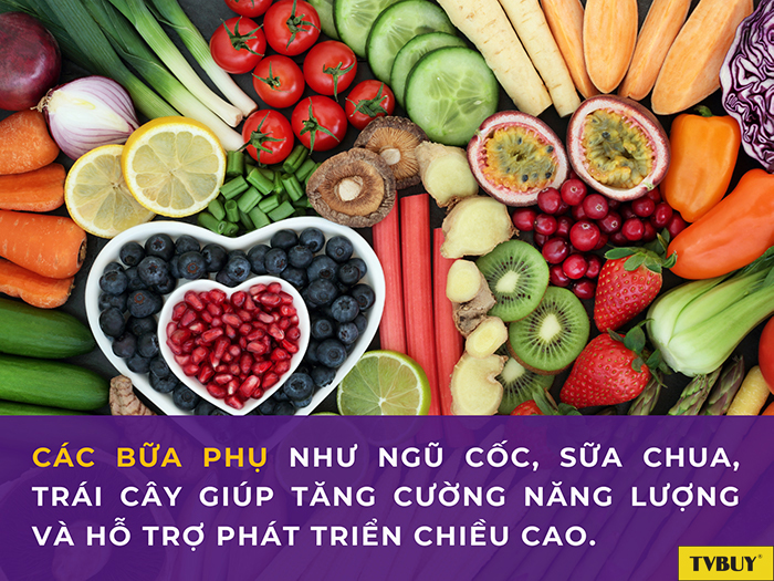 3 bữa ăn chính và 2 bữa ăn phụ trong ngày là chế độ ăn giúp các bạn trẻ bổ sung liên tục các chất dinh dưỡng và kiểm soát lượng calo tiêu thụ hằng ngày, đảm bảo không tiêu thụ quá nhiều calo một lần. Tính chất của bữa phụ là tăng cường dinh dưỡng, bù đắp năng lượng cho các hoạt động trong ngày. Ngoài các món ăn chính, các bạn trẻ có thể thêm vào bữa phụ các món như ngũ cốc, sữa chua, sữa hạt, trái cây, các món ăn nhẹ…